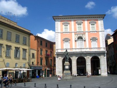 Het gebouw van drie verdiepingen staat aan Piazza Giuseppe Garibaldi 9, nabij talrijke restaurants en historische monumenten in het centrum van Pisa.