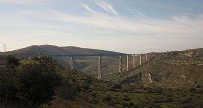 De Ponte Costanzo strekt zich 956 meter uit over de Irminio-riviervallei, met betonnen pilaren en stalen dwarsbalken op 168 meter hoogte.