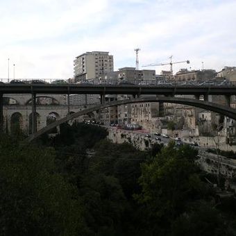 De Pont Jean XXIII verbindt verschillende delen van Ragusa via betonconstructies en strekt zich uit over het lokale terrein met moderne kenmerken.