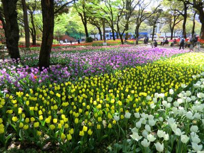 Het terrein bevat ongeveer 140.000 tulpenbollen die opvallende bloemexposities creëren tijdens het lentebloeiseizoen in april. Deze lenteshows trekken veel bezoekers aan die de kleurrijke transformatie van het park willen zien.