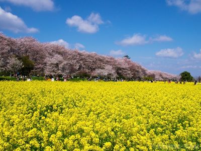 De Satte Gongendo Sakuratsutsumi sectie toont 1000 Yoshino kersenbomen langs een traject van één kilometer tijdens het lenteseizoen.