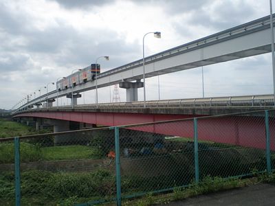 De bouw van de brug werd voltooid in maart 1989, eerst alleen voor wegverkeer voordat in januari 2000 de Tama-monorail werd geïntegreerd.