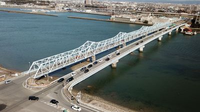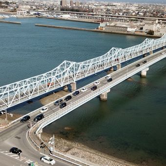 Kinuura Ohashi is een verkeersbrugverbinding tussen twee steden over de wateren van Mikawa Bay en biedt plaats aan voertuigen en voetgangers. De constructie stelt verkeer in staat soepel te bewegen terwijl het uitzichten op het kustgebied biedt.