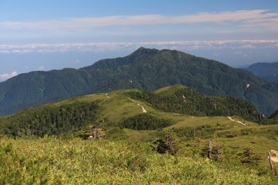 De Mount Kuwasaki rijst 2089,7 meter boven zeeniveau uit, met meerdere paden door beboste hellingen in de noordelijke Japanse Alpen.
