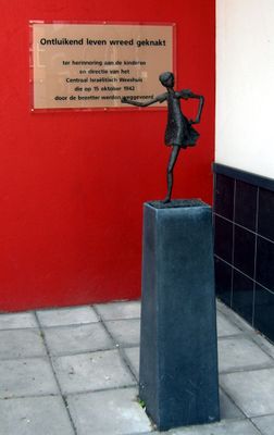 Vijf Stolpersteine herdenkingsstenen markeren het trottoir buiten, ter herinnering aan de weeshuisbewoners die in 1942 naar concentratiekampen werden gedeporteerd.