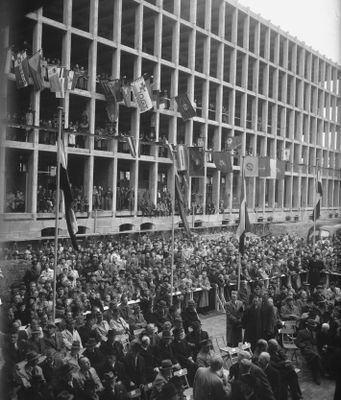 Architect Julius Luthmann won de ontwerpwedstrijd in 1933, maar de bouw werd meer dan tien jaar vertraagd door de Tweede Wereldoorlog.