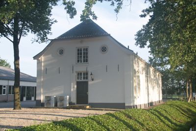 Het hoofdgebouw van Groenewoude toont wit gepleisterde muren en architectonische elementen uit 1696.
