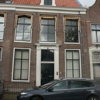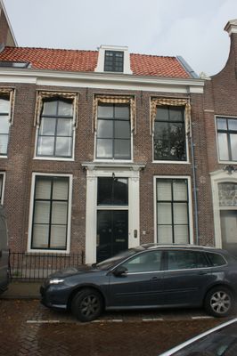 Statig patriciershuis, ingangsomlijsting met zwaar gebeeldhouwde deur, bovenlicht, consoles fraai gesneden; rechte kroonlijst, fraai stoephek régence met krullen en initialen