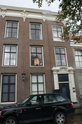 Statig patriciershuis, ingangsomlijsting met zwaar gebeeldhouwde deur, bovenlicht, consoles fraai gesneden; rechte kroonlijst, fraai stoephek régence met krullen en initialen