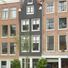 Lage dienstwoningen onder om de hoek van de Rapenburgerstraat omlopend schilddak