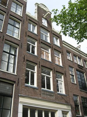 Pand met halsgevel met gedeelde vleugelstukken en palmet in de afdekking, Rijksmonument op Bloemgracht 116