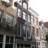 Huis met latere gevel, voorzien van een vroeg-19e-eeuwse houten pui met goede roedenverdeling en beglaasde empire deur en bekroond door een klokvormige top onder rollagen