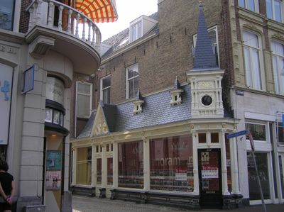 Boekwinkel met bovenhuis in neo-classicistische stijl