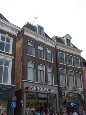 Pand met twee verdiepingen met rechte kroonlijst waarop vier paren consoles