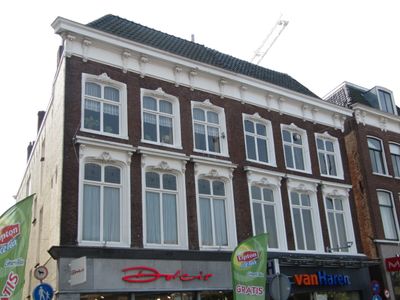 Vier traveeën breed pand onder hoog en diep dwarsdak