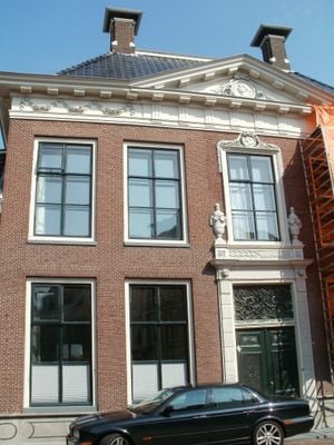 Vijf traveeën breed woonhuis in Lodewijk XVI-classicistische stijl, Rijksmonument op Ossekop 9