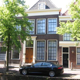 Hoekpand Nickersteeg. Pand met brede lijstgevel van vier vensterassen