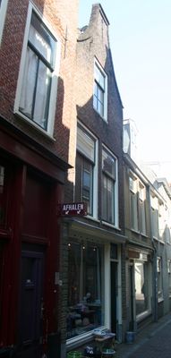 Pand met bakstenen tuitgevel. Ondergevel gewijzigd, Rijksmonument op Diefsteeg 11