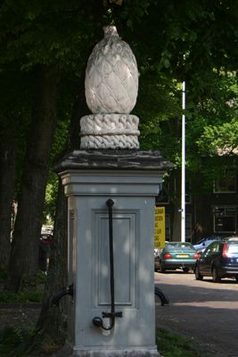 Pomp met hardsteen en hout, bekroning door grote zandstenen sajetklos