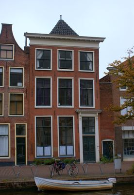 Pand met gepleisterde lijstgevel, deuromlijsting. Stoep met stoeppalen. In de 19e eeuw verfraaid