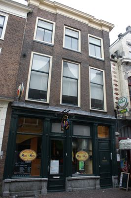 Pand met bakstenen gevel met rechte kroonlijst. Lod.XV consoles, hardstenen originele onderpui. Goed gesneden dubbele voordeur, gesneden bovenlicht, gesneden raam en deurkalven