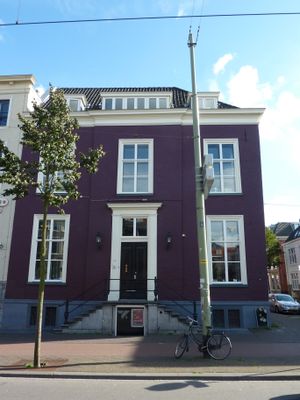 Hoekpand met rechte kroonlijst op hardstenen plint en dito stoep, Rijksmonument op Prinsegracht 14, Den Haag