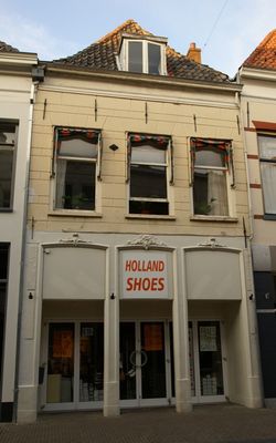Huis met gepleisterde lijstgevel en jongere winkelpui