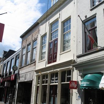 Pand met geverfde rechte gevel en eenvoudige winkelpui