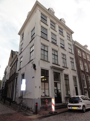 Linker helft van in twee woningen gesplitst, breed, onderkelderd, laat-gotisch huis