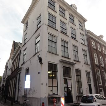 Recht helft van in twee woningen gesplitst, breed, onderkelderd, laat-gotisch huis