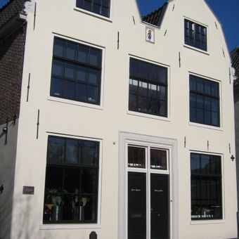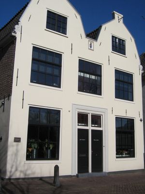 Huis met topgevel, van eenvoudige doch harmonische architectuur, goede proportie's. Specifieke stedebouwkundige ligging