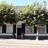 Huis met gebosseerd gepleisterde lijstgevel, moderne etalage