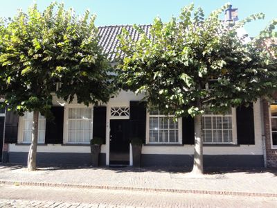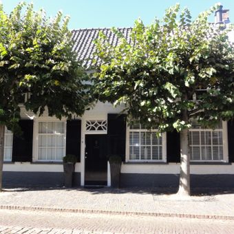 Hoog dorpshuis met zadeldak tussen zijtopgevels met vlechtingen