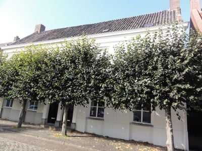 Eenvoudig witgeverfd pand onder zadeldak met zijtopgevel