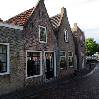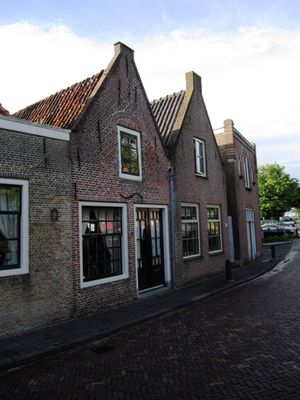 Rechts een pand met puntgevel waarin een zoldervenster met ontlastingsboog. Links een pand met puntgevel, versierd met vlechtingen en geblokte ontlastingsbogen, Rijksmonument op Dorpsstraat 11