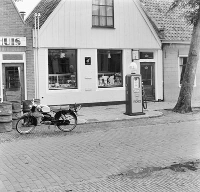 Eenvoudige woning met gepleisterde gevel onder aan de oostzijde afgeschuind dwarsdak