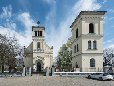 De parochie, gesticht in 1238 door Hertog Koenraad I van Mazovië, werd in 1848 herbouwd onder architect Franciszek Maria Lanci.
