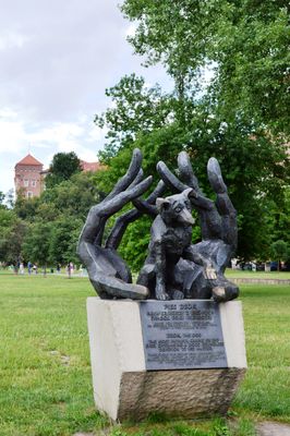 Standbeeld van de hond Dżok, Herdenkingsbeeld bij Grunwaldzkie Rotonde, Krakau, Polen