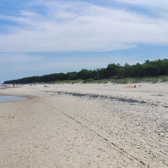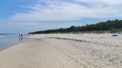 Het 4 kilometer lange zandstrand strekt zich uit langs de Oostzeekust met natuurlijke duinen en dennenbossen.