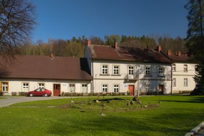 Outhouses of palace in Rajcza, historic buildings in Rajcza, Silesian Voivodeship, Poland