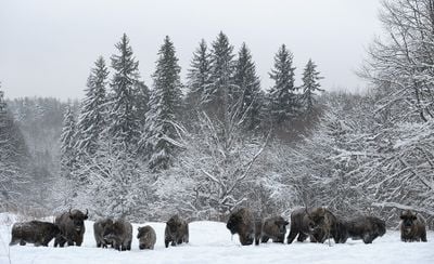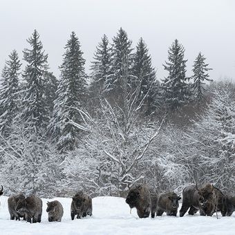 Het reservaat neemt deel aan een herintroductieprogramma voor Europese bizons, waarbij de lokale kudde in 2013 groeide tot 84 kalveren in de gemengde bosomgeving.