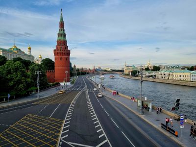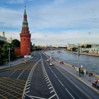 De Kremlyovskaya-kade strekt zich uit langs de noordelijke oever van de Moskva-rivier met directe uitzichten op de Kremlinmuren.
