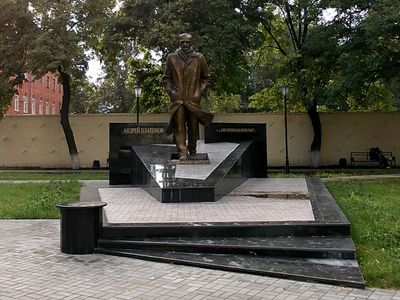 Het door beeldhouwers Ivan Dikunov en Elza Pak gemaakte monument werd onthuld op 11 september 1999, ter markering van Platonovs 100e geboortedag.