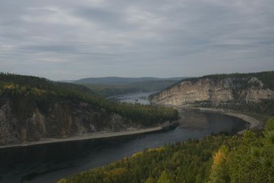De kalkstenen kliffen van Lenskiye Shchyoki rijzen 201 meter boven de Lena-rivier uit en vormen verticale wanden die zich over kilometers uitstrekken.