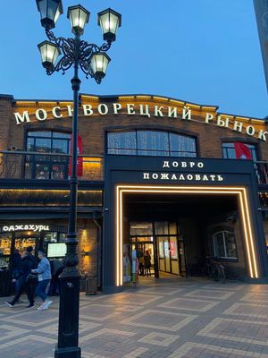 De Moskvoretski-markt strekt zich uit langs de Simferopolski Boulevard met kramen met groente, fruit, vlees, zeevruchten en lokale voedingsmiddelen. De indeling organiseert goederen naar soort, met aparte secties voor verschillende voedselcategorien.