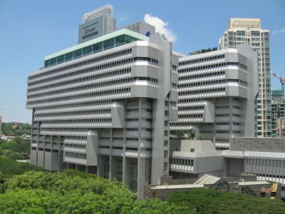 TripleOne Somerset is een 17 verdiepingen tellend gebouw met kantoren, medische voorzieningen en winkels. De massieve betongevels met rechthoekige keramische tegels bepalen het uiterlijk van deze gemengde gebruiksruimte.