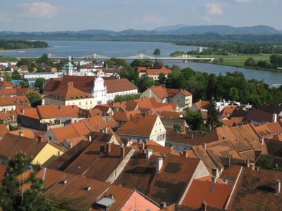 De Puh-brug strekt zich 430 meter uit over de Drava-rivier met twee rijstroken en gescheiden paden voor fietsers en voetgangers.