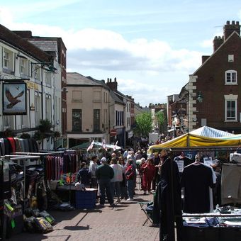 De markt vindt plaats op woensdag, vrijdag en zaterdag, met kraampjes die producten verkopen zoals fruit, groenten, vlees en soms Welshe specialiteiten. Rond Church Street en Bailey Street vallen vakwerkhuizen op, die het erfgoed van deze grensstreek tonen.