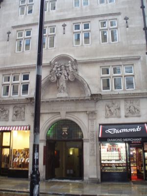George Sherrin ontwierp de kerkingang om te integreren met omliggende winkels, waardoor het de eerste nieuwe katholieke parochiekerk in de City sinds 1500 werd.