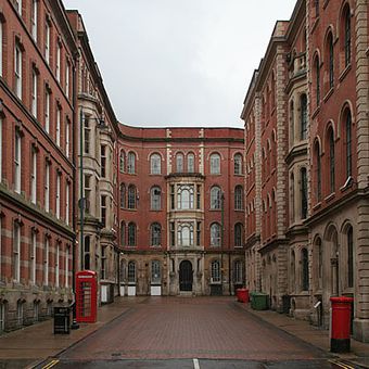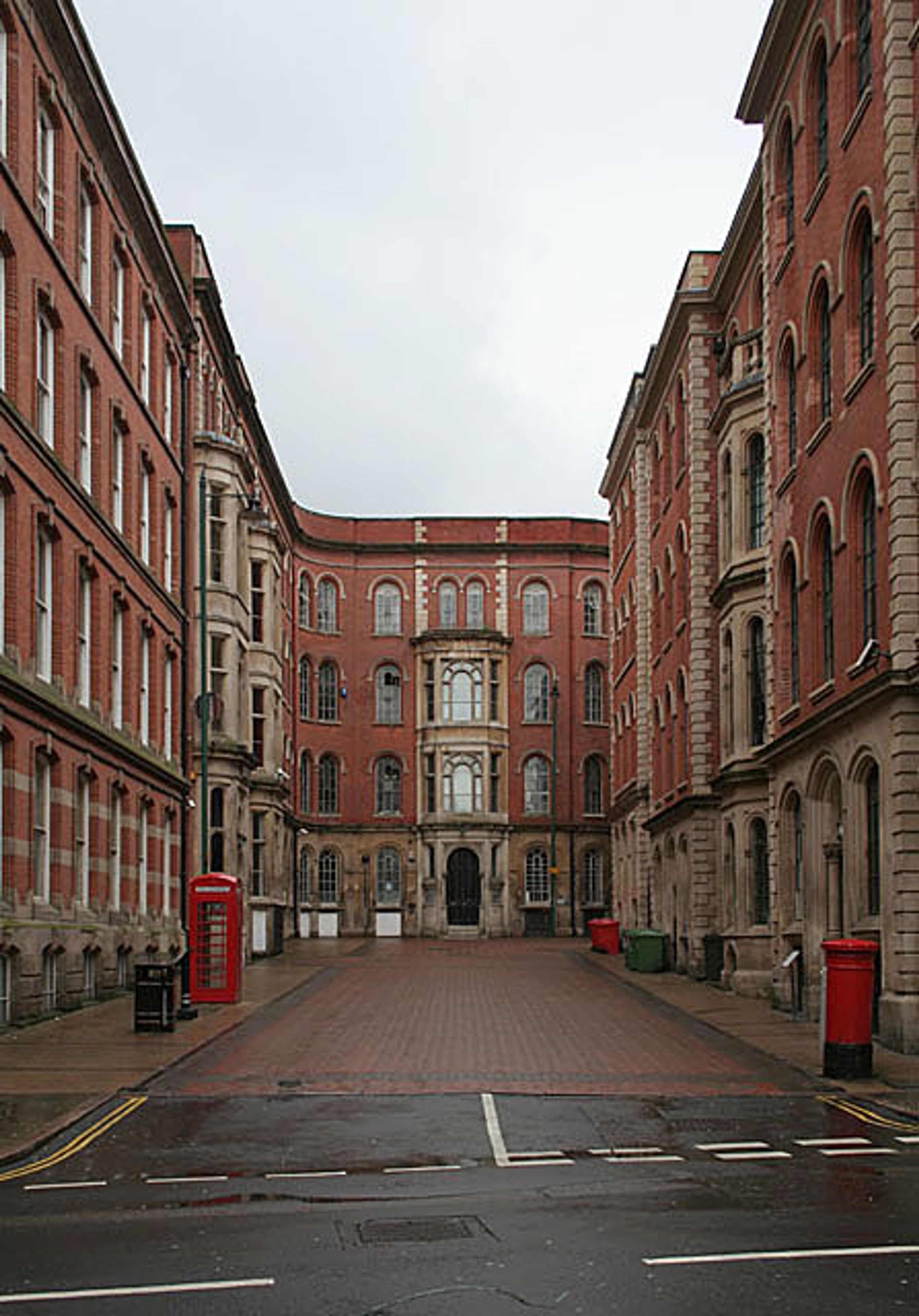 De Lace Market wijk bevat victoriaanse gebouwen van rode baksteen met uitgewerkte ramen en voormalige pakhuizen verspreid over meerdere straten.